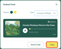 - Click ‘copy’ to save the embed code to your clipboard.