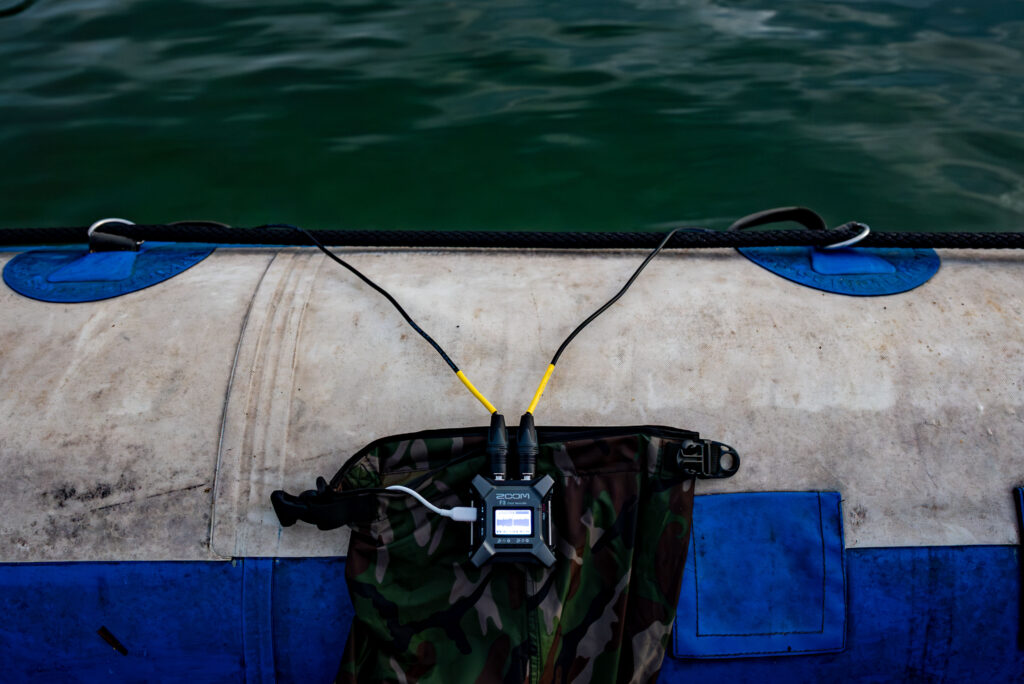 What better application for a drop rig then? One evening after I had returned from the rainforest I took a small boat out at sea and anchored it there. I then set up a hydrophone drop rig there and was picked up by a second boat so I could return to base. The rig was out for a few days capturing the lovely underwater soundscape while I was doing my work on land.