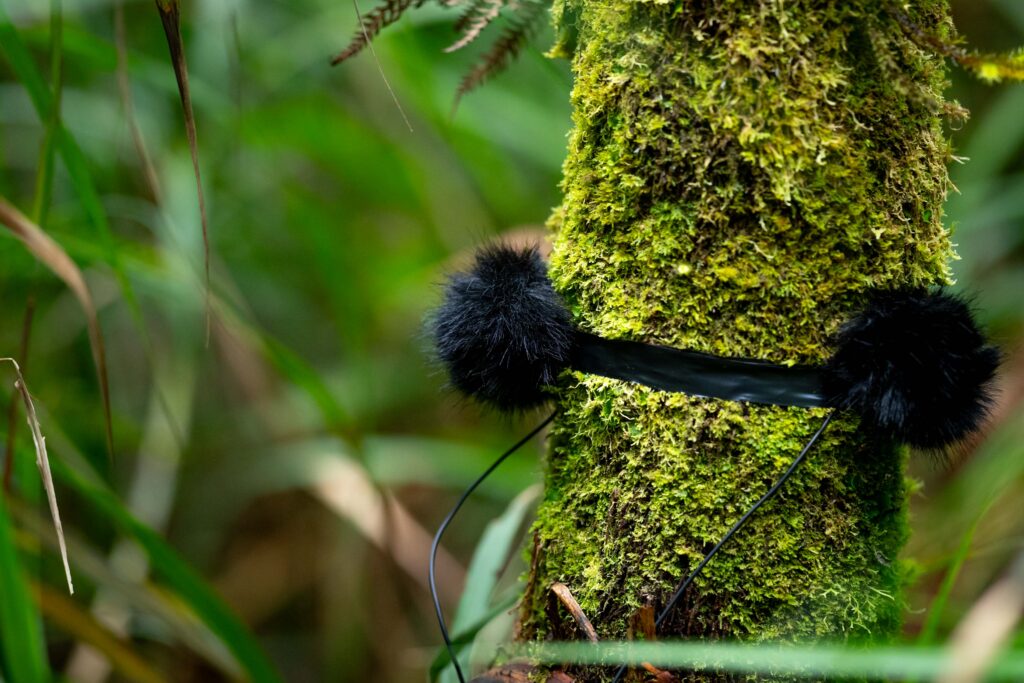 This is an easy one – tree ears are recording rigs set up on trees, approximating the shape of the human head and the orientation of our ears. The distance between microphones should be around 17 cm. While the angle doesn’t matter much with omnidirectional microphones, the grooves and irregularities in the bark can sometimes help make the capsules pick up sound in a slightly more directional way.
