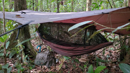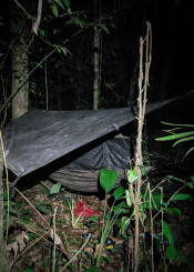 I set up my hammock and tarp between two trees. In such precious habitats, I take extreme care to make as minimal an impact as possible. For example, when setting up a camp, I could have used my machete to hack away vegetation. Instead, I gently bent the plants out of the way to make a space for myself. A single paracord rope was stretched between two trees. I spread a tarp over the top and attached it to trees and bushes on either side with an elastic rubber cord. This safety and comfort enabled me to focus on the reason I was there: to capture the soundscape of the rainforest.
